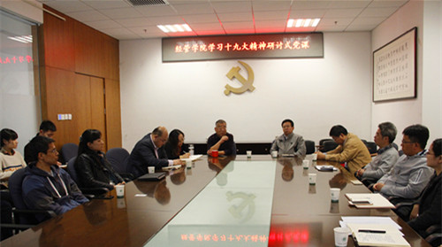 学院领导班子和部分教师代表开展学习十九大精神研讨式党课,与会教师观看了中央电视台关于十九大闭幕会的专题报道,围绕十九大报告中提出的教育改革、人才建设、高校任务等概念,结合学院教学科研、聘期改革、人才培养等实际工作开展专题研讨,表示要将学习十九大精神贯穿到学院发展和教师、学生成长全过程中,用党建和思想政治工作化解实际工作中的矛盾,满足大家对美好生活的向往。